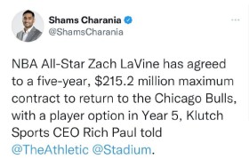 芝加哥公牛队与核心球星扎克·拉文达成5年2.15亿美元顶薪续约,此举标志着球队正式将未来押注于这位两...
